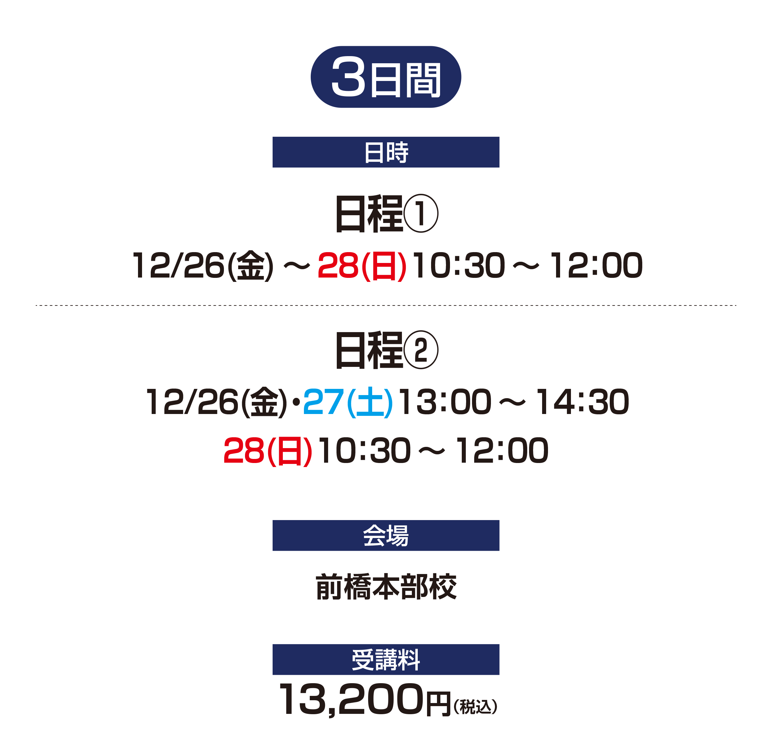※入試本番力講習をお申込みの方は、内容が重複しますのでお申し込みは不要です。