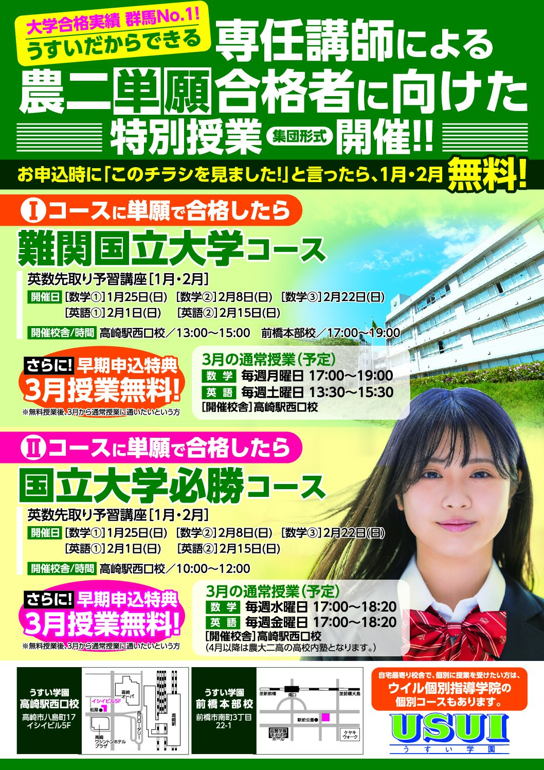 注:GEコース入学予定者はⅠコースと同じ日程で行います