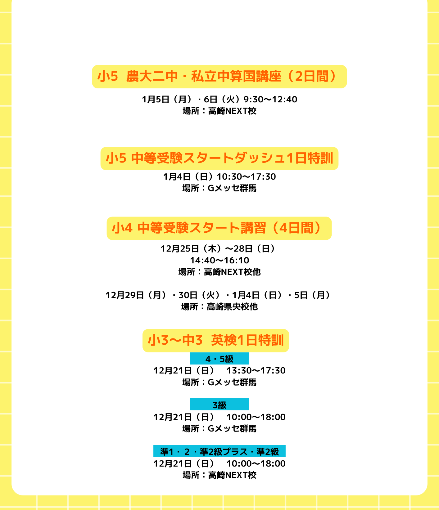 うすい学園北部校では今年も冬期講習を実施いたします!