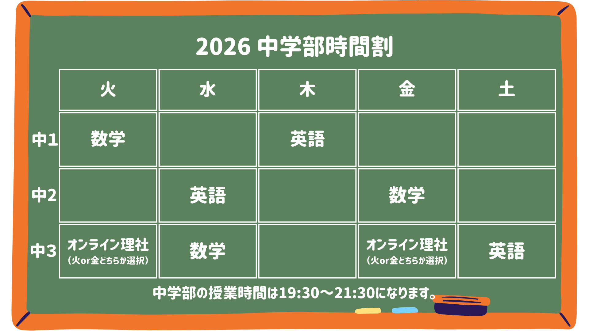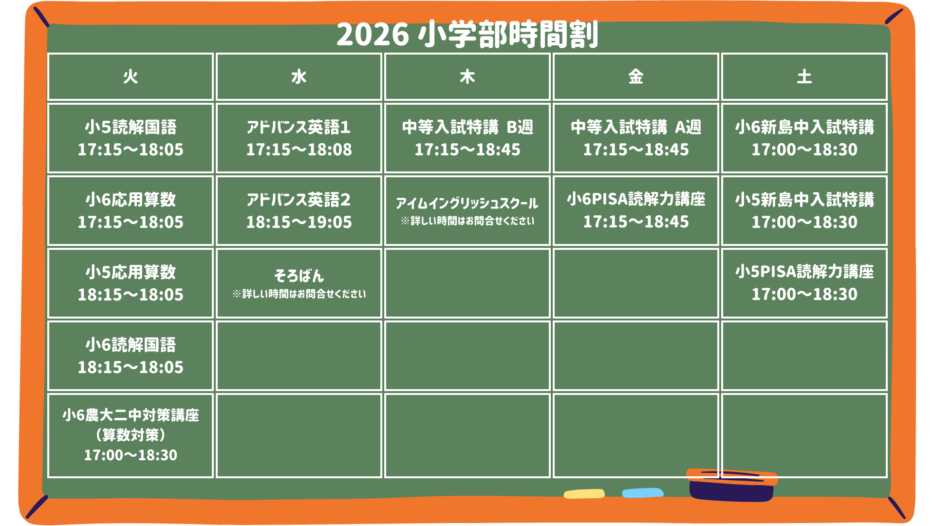 2026年度 安中本部校 小学部・中学部 時間割