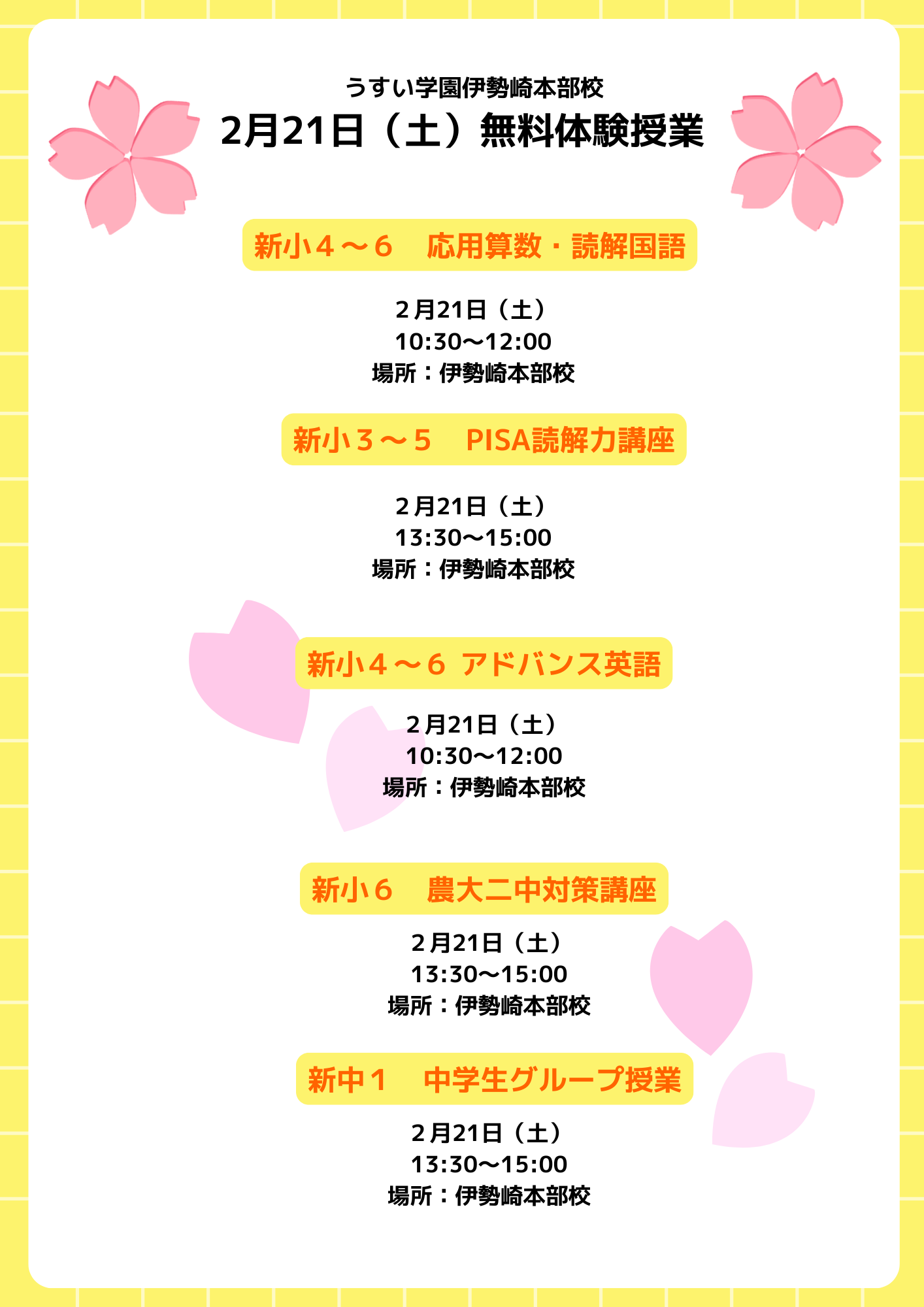2月現在、新学年に向けた無料体験授業を実施しております!