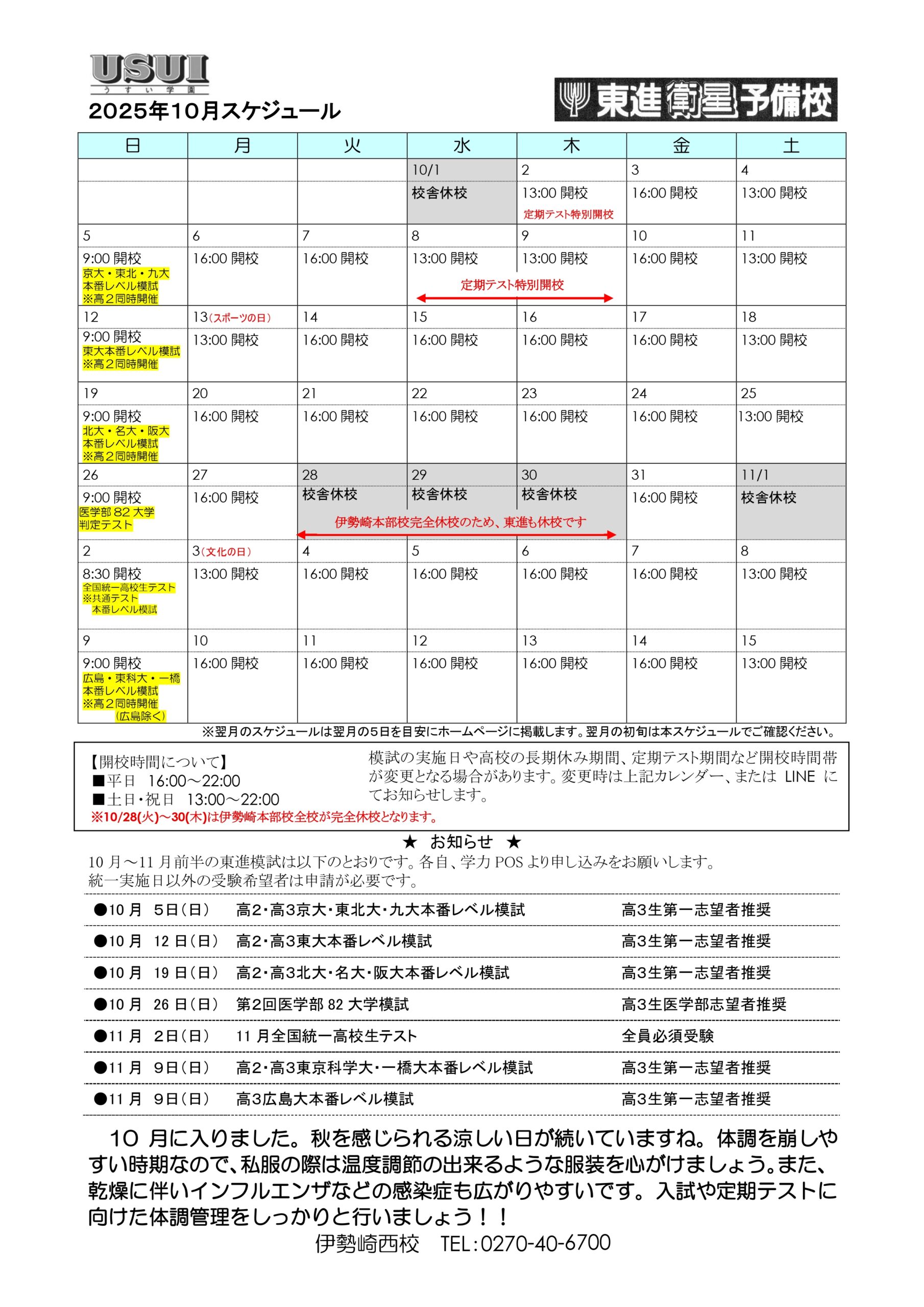 ※10/28(火)~10/30(木)は、校舎内全部門完全休校となります。