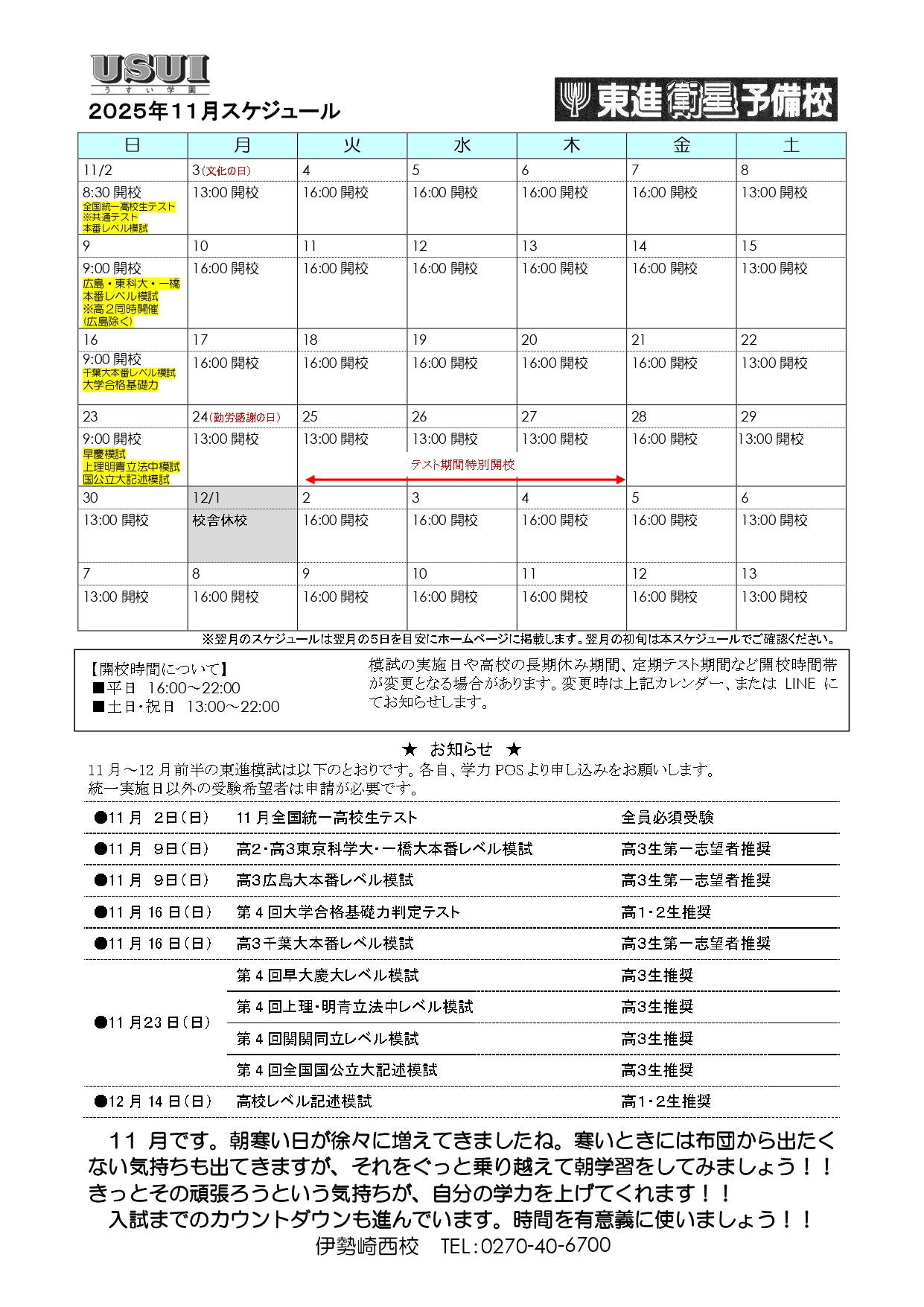 伊勢崎西校からのお知らせ(11月20日更新)