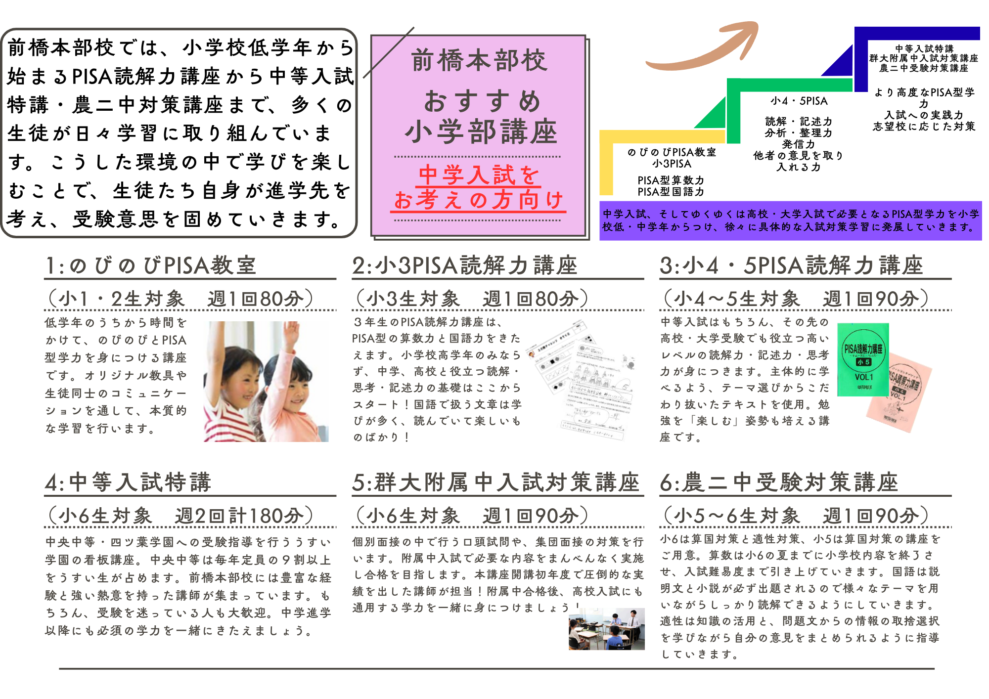 「年中さんから高校3年生まで」塾という枠を超えた教育がここにはあります!是非一度前橋本部校へ足を運んでみてください。
