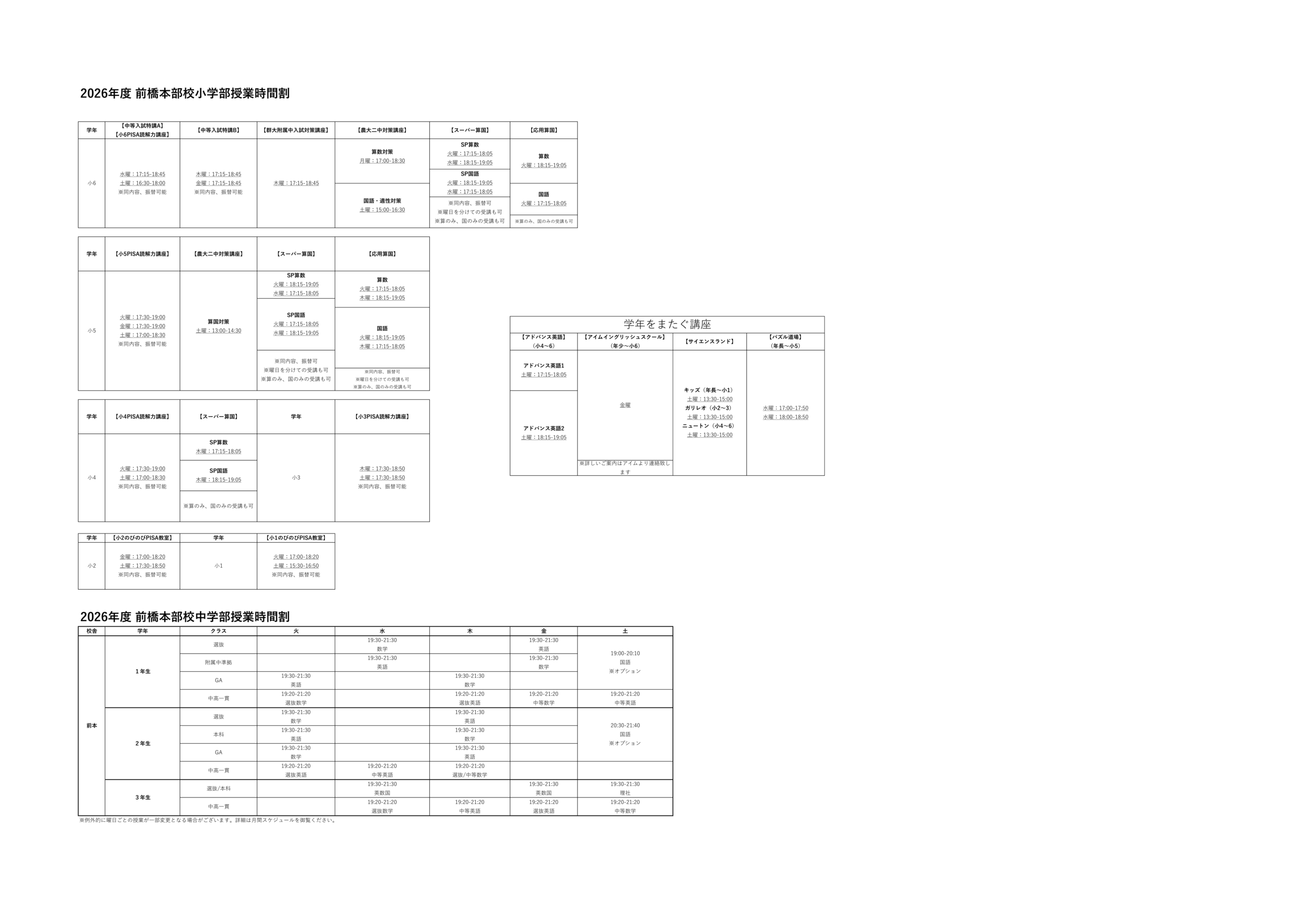 前橋本部校 教室情報