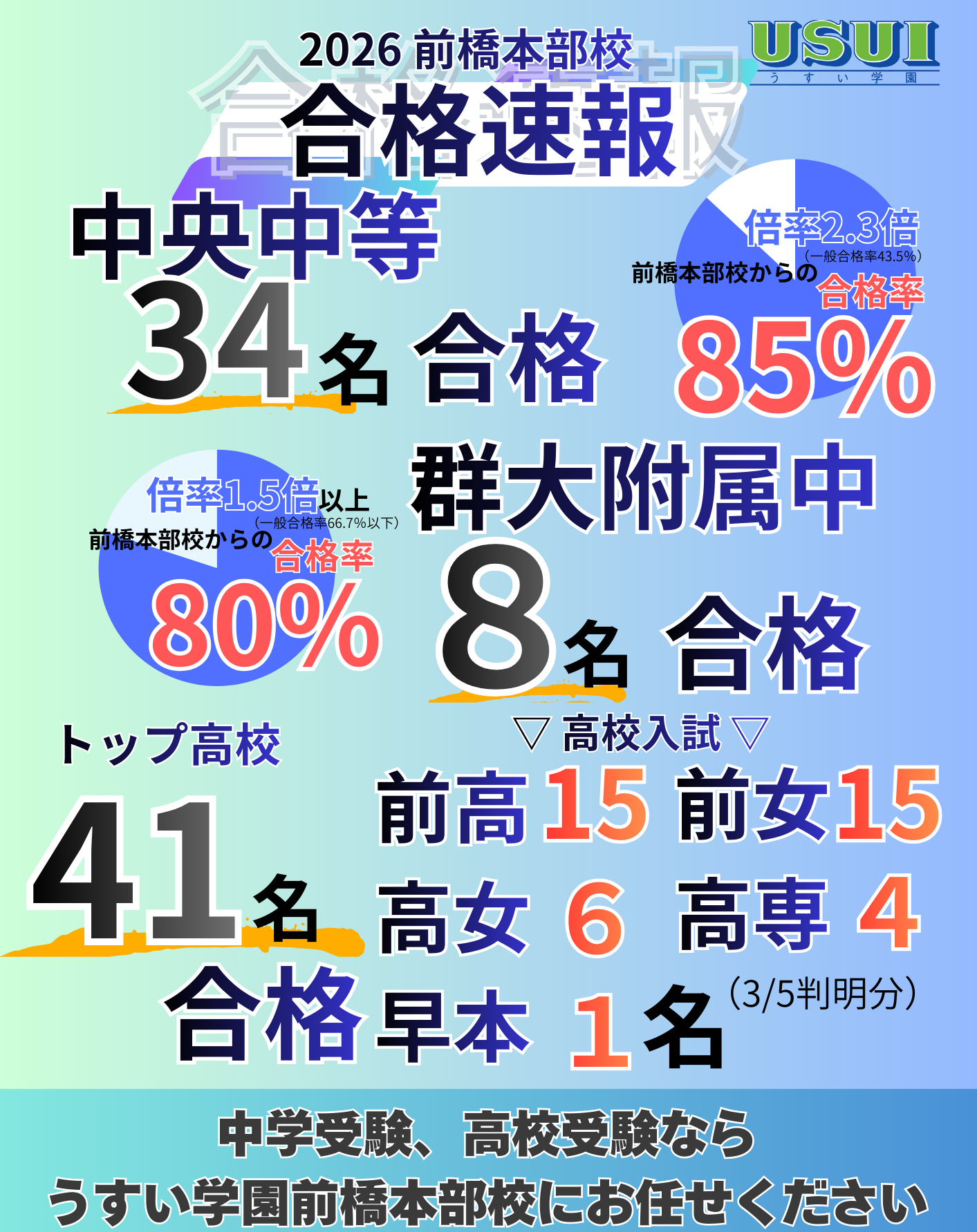 ※前橋本部校の合格者人数です。うすい学園全体の合格実績は、こちらからご覧ください。