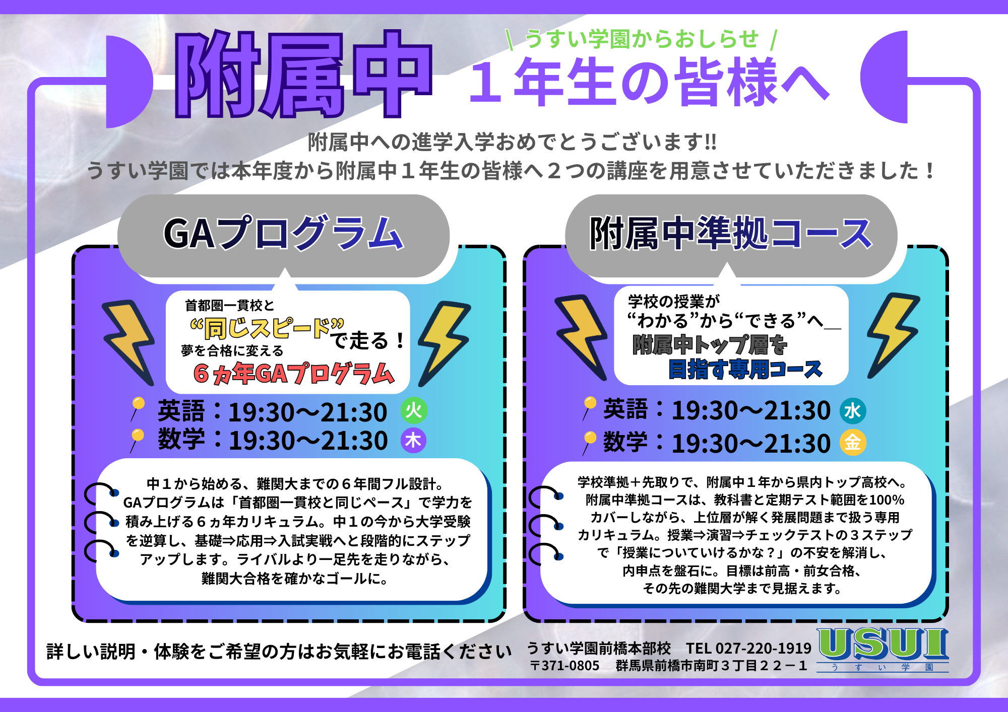 うすい学園前橋本部校のページへようこそ