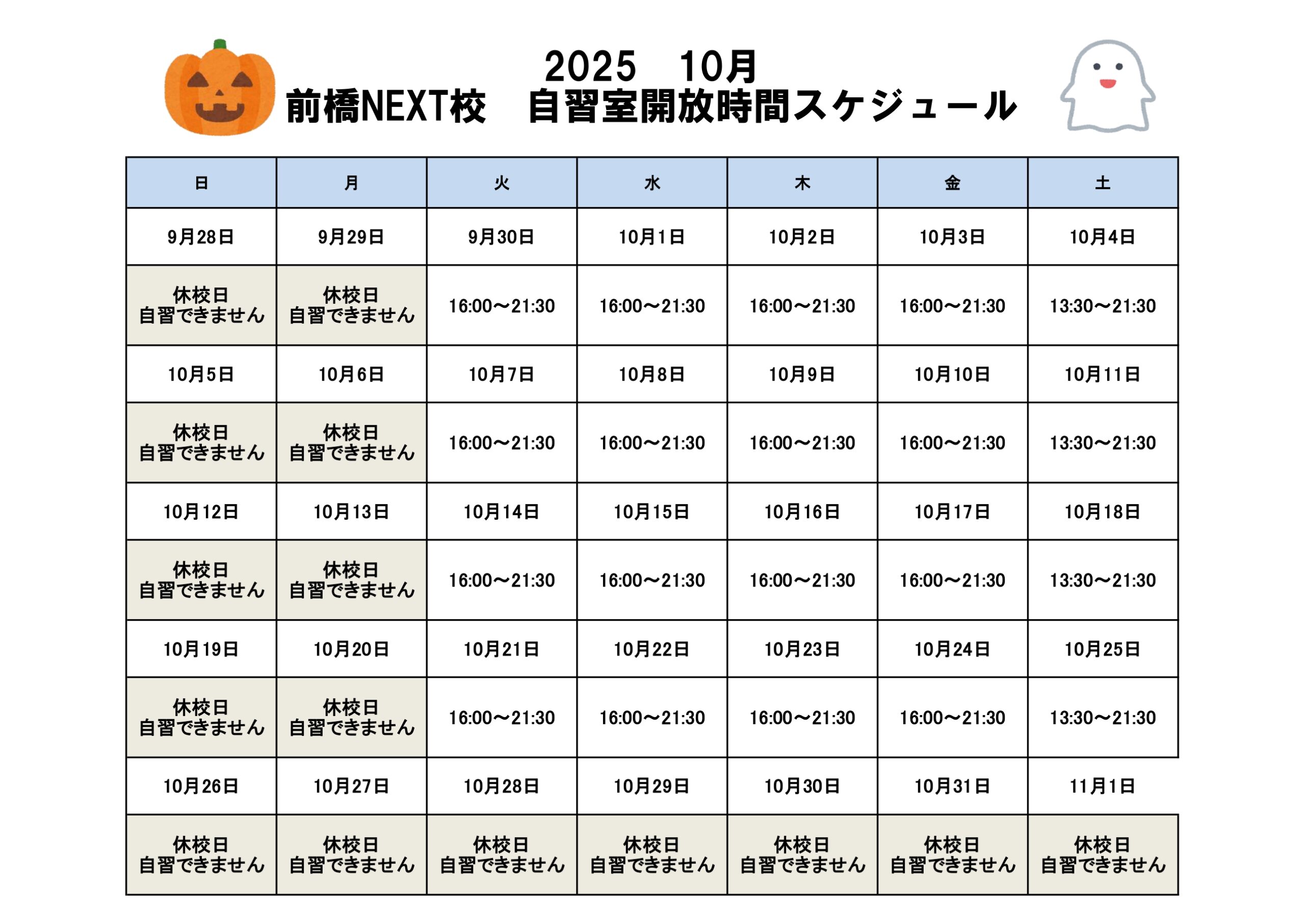 自習室スケジュールは前橋NEXT校公式LINEを追加していただくと確認することができます。ID:494ihpyu