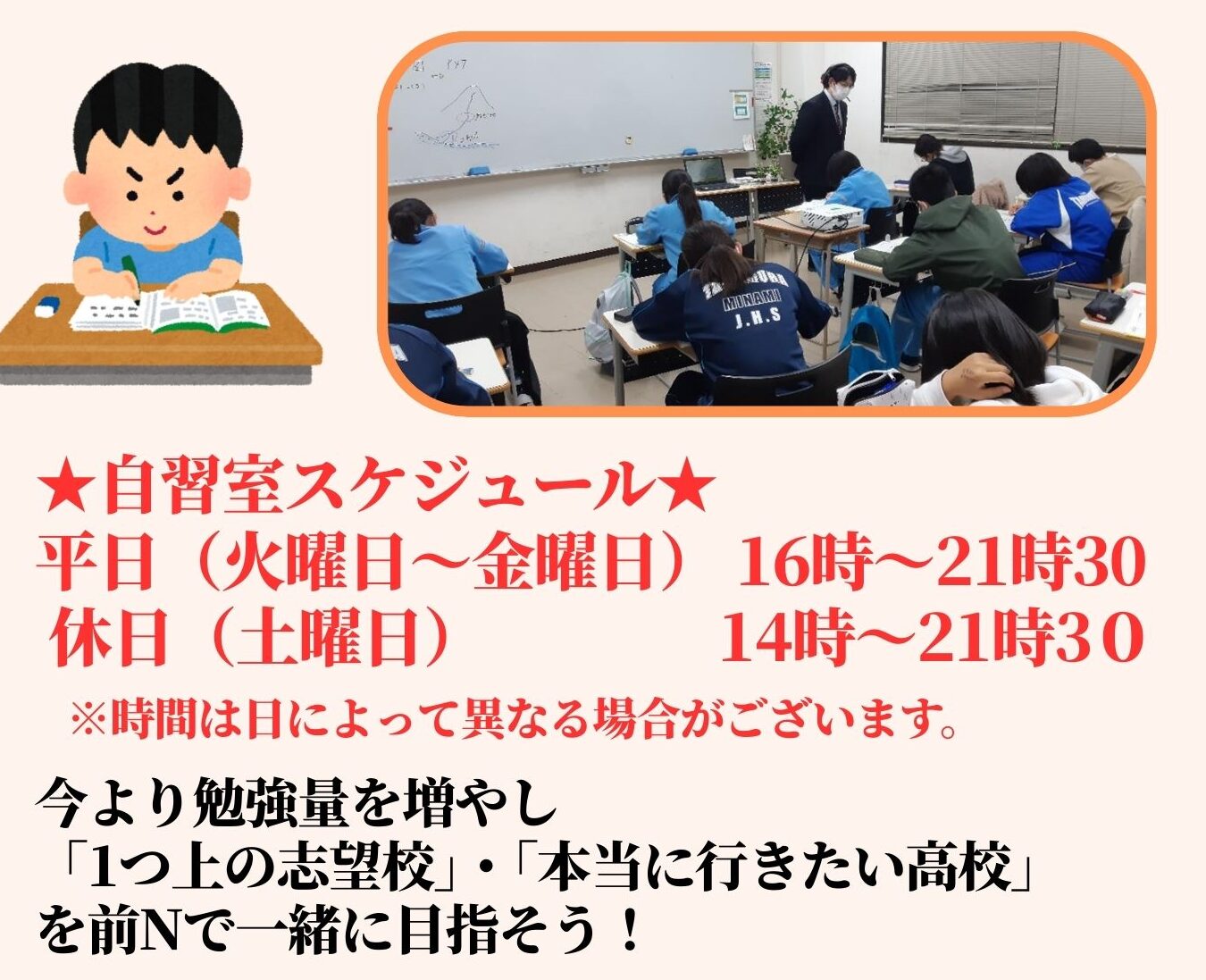 ●自習室のお知らせ~前Nで勉強時間を増やそう!~