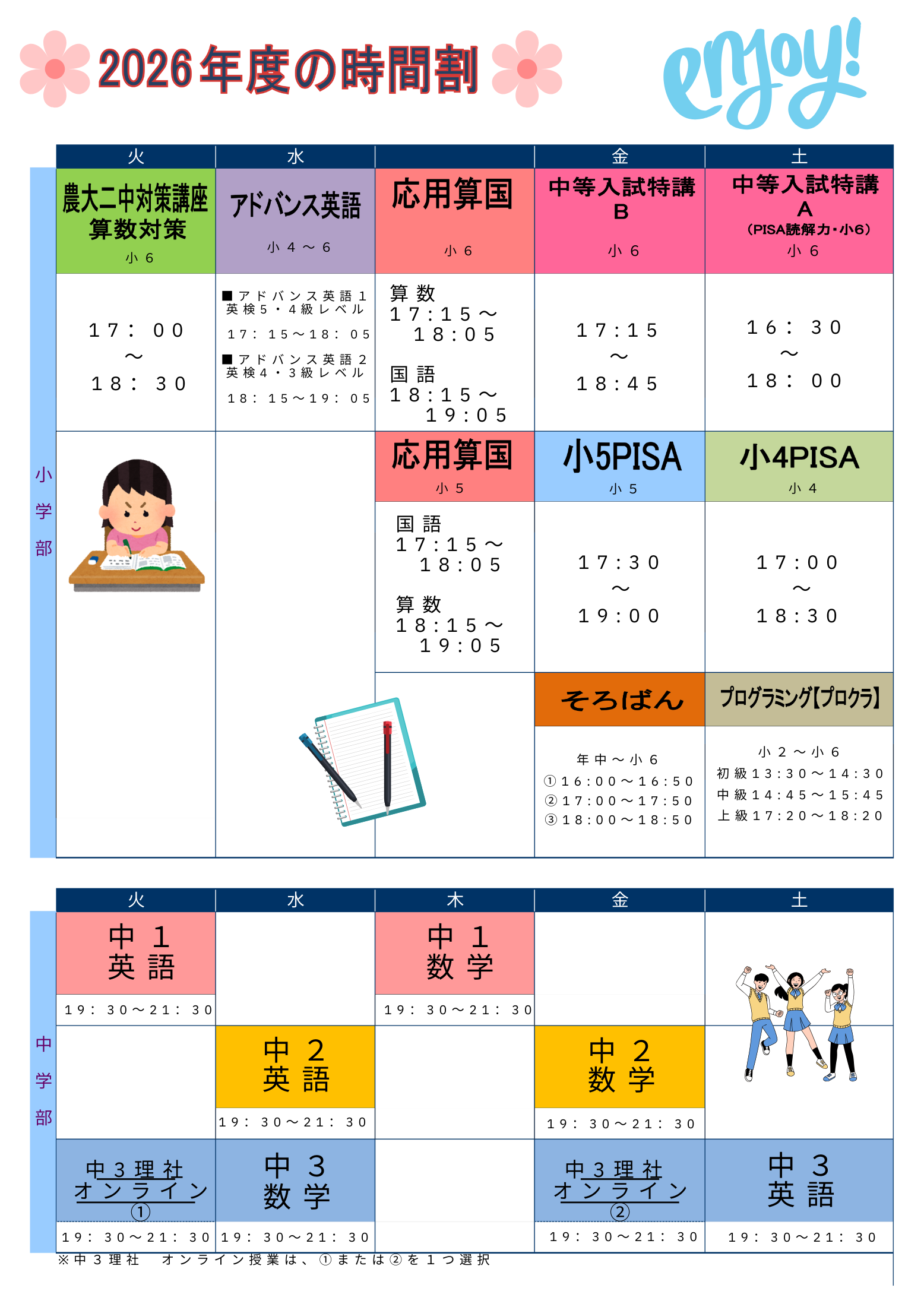 前橋NEXT校 2026年度 集団授業 時間割