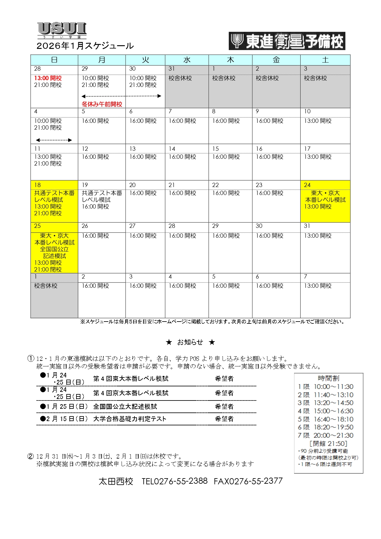 日13:00~21:00(模試運営などで変更する可能性あり)