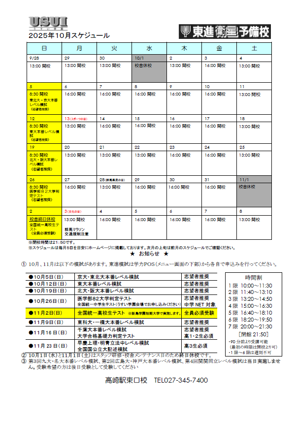 ★コロナウイルスの感染拡大状況などによっては、スケジュールとは開校時間が変更になる場合がありますので、その場合はLINEなどでお伝えします★