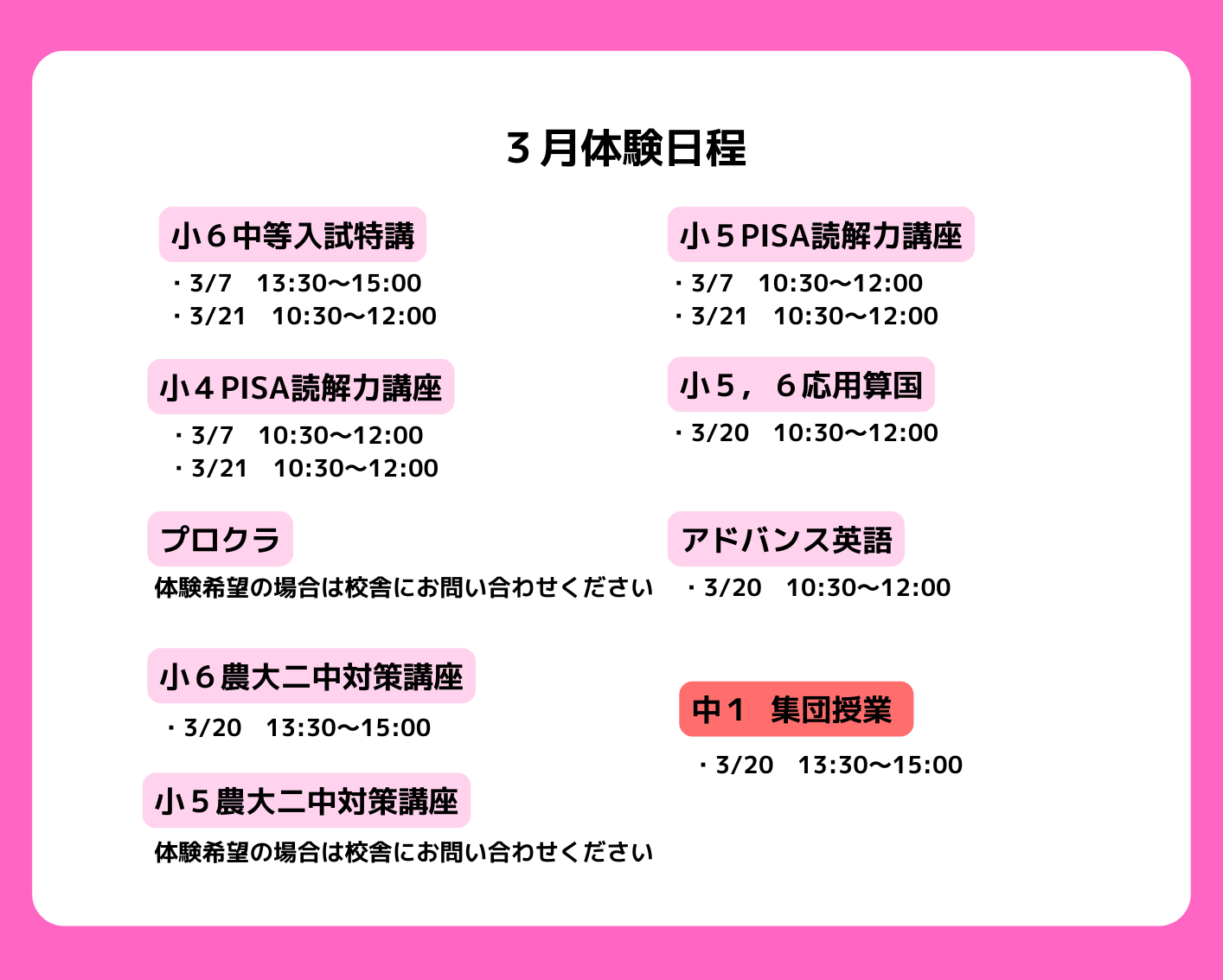 算数や国語など教科の学習では対応できない中央中等・四ツ葉中等・太田中学入試に向けた対策講座です。