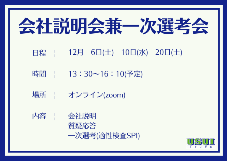 会社説明が終わるとすぐに選考に参加できますので、スピーディーに選考を進めることが可能です◎