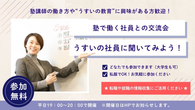 うすいグループや塾業界での働き方などについて、社員のリアルな声をお届けする交流会を開催します。