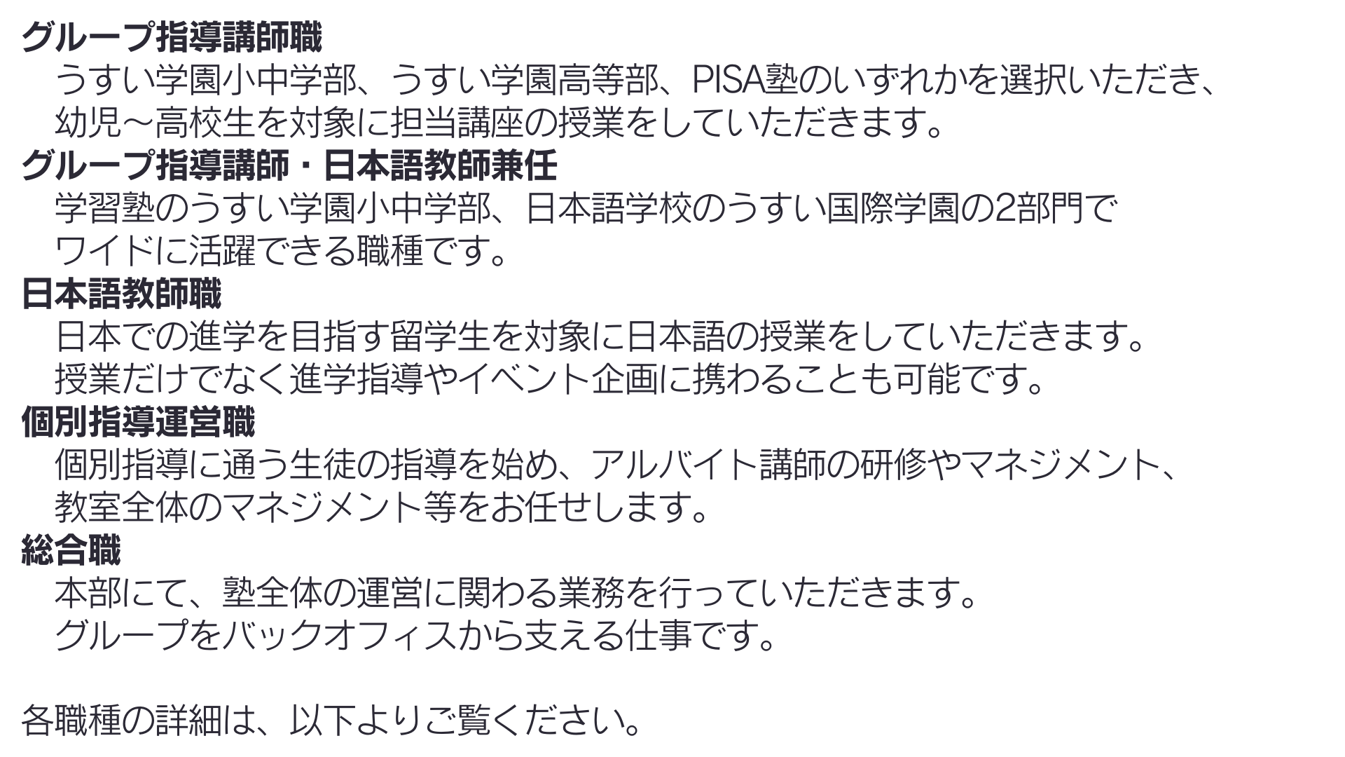 学習塾・日本語学校【うすいグループ】採用情報サイト