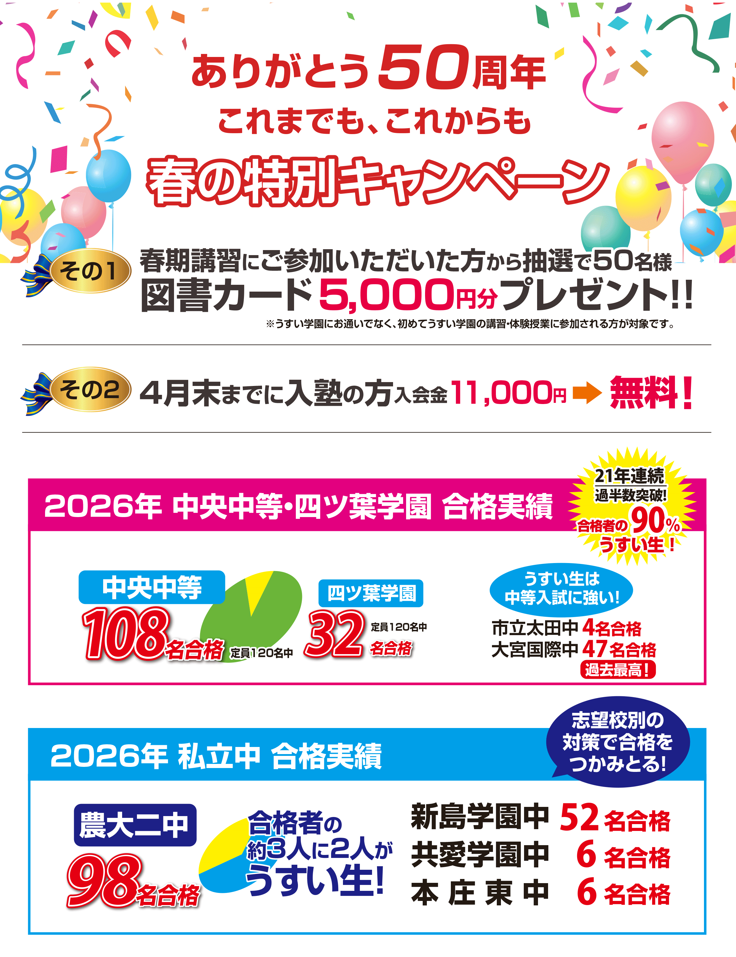 中央中等合格実績20年連続第1位のうすい学園