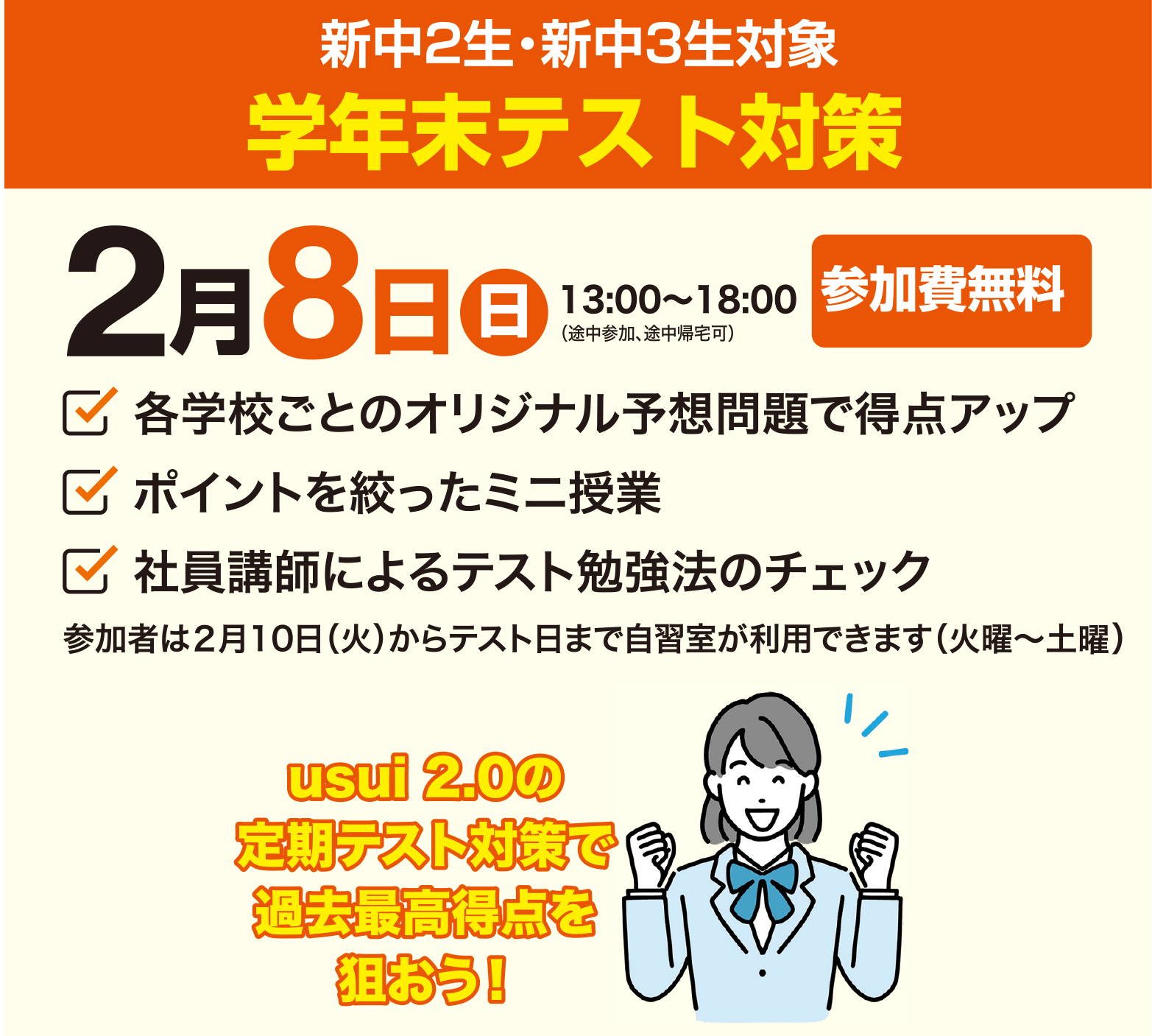 中学生に対しては、矢中中・大類中・倉賀野中・佐野中など、地域の中学校の定期テストに特化した対策を行います。
