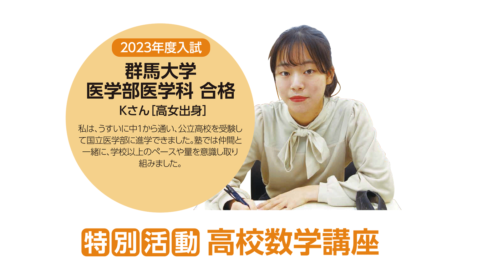 ※高校数学講座は年9回あり、内容は毎回異なります。高崎会場・前橋会場があり、都合に合わせて、会場を変えながら受講いただけます。