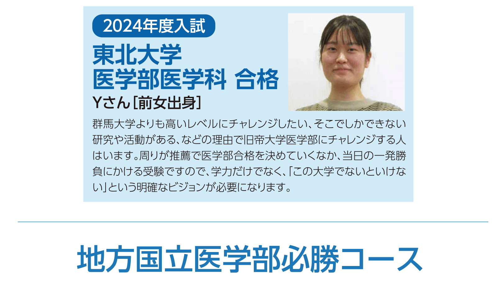 2024年度入試では合格者111名中66名(59.5%)が群馬県外(1都3県)出身者でした。群馬出身者の34名(30.4%)中、ほとんどが推薦入試での合格者で、また浪人生がいることも踏まえると、群馬の現役生は、かなり分が悪いことがわかります。