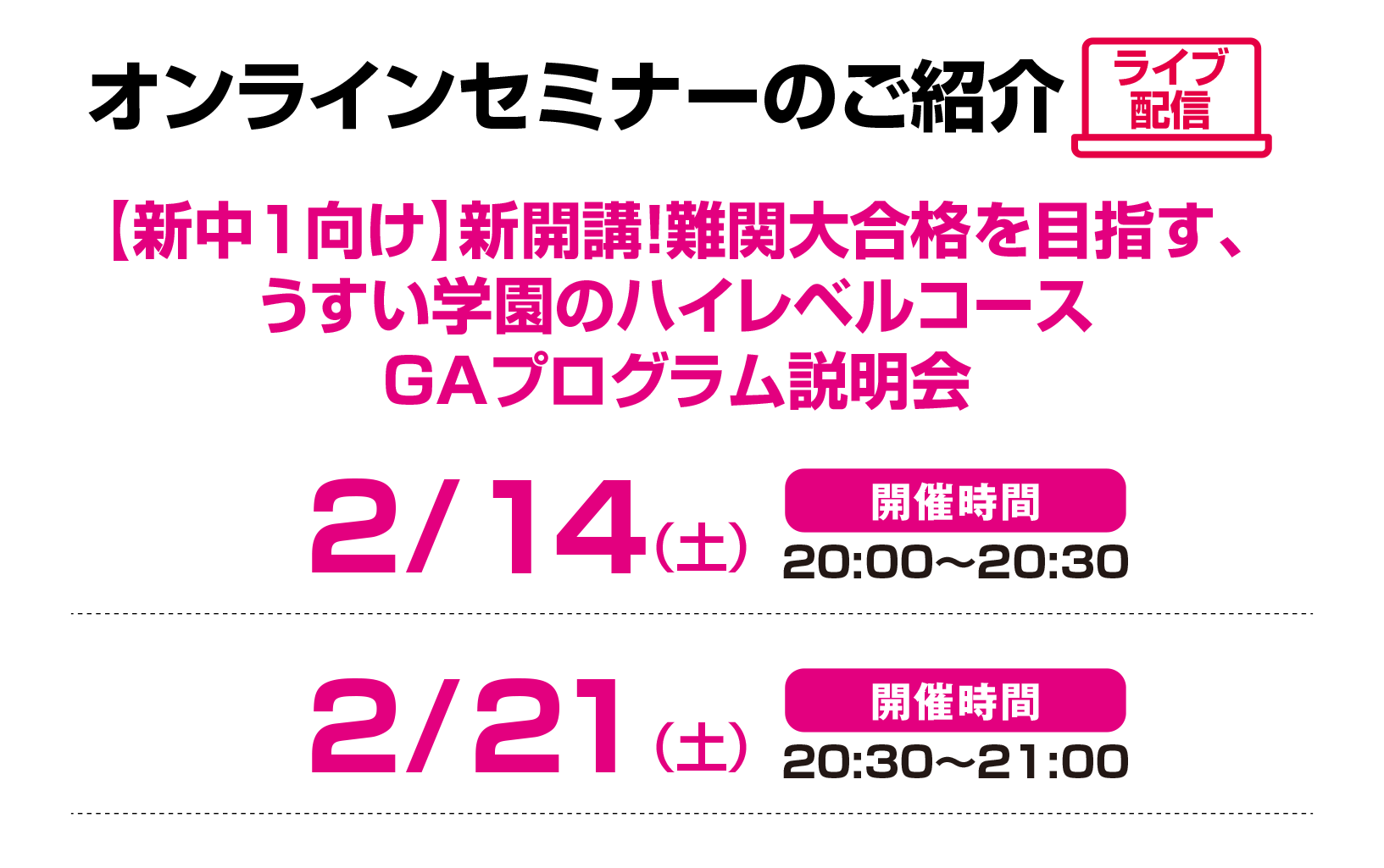 高校範囲の英文法を想定し、中1・2時のGAプログラムは「文法重視」で、「超速習」で中学範囲の英文法を履修します。そのなかで長文読解に必要な英文解釈や、大学別二次試験を見据えた英作文を授業に取り入れていきます。併設校舎のウィル個別指導学院でGAプログラムでの学習をフォローをする特別カリキュラムがあるので、中1時点で英語が未経験な方も安心です。